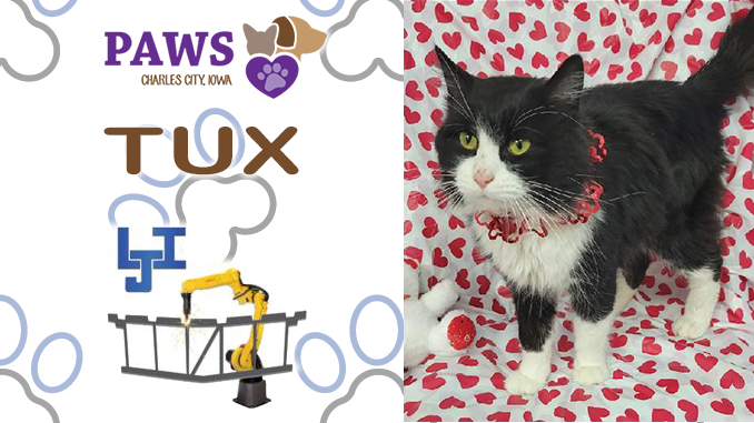 PAWS Humane Society Director Julie Taylor brought Tux as this week’s pet of the week. Tux is a domestic longhair mix who is friendly, affectionate and curious. To read more about Tux or to fill out an adoption application, go to PawsCharlesCity.com.