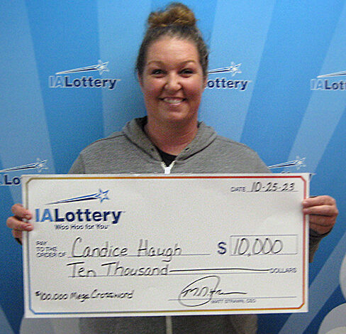 Looking to unwind before bed, 44-year-old Candice Haugh of Nashua scratched her Iowa Lottery “$100,000 Mega Crossword†ticket and won the 13th prize of $10,000. She bought her lucky ticket at Kwik Star in Nashua and claimed her prize at the lottery’s Mason City office last Wednesday (10.25).