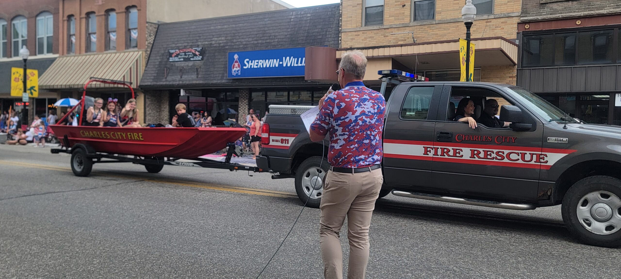 Chris was born in Webster City and raised in Charles City, which basically means he’s been corn‑fed and radio‑bred since day one. As a kid, he was always caught singing along to the radio — and while he’ll tell you he’s great at karaoke, let’s just say the audience’s ears often file a noise complaint.