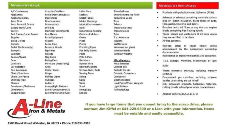 The club’s Jim Kiffel says metal items will be accepted from 8 am to 2 pm in the parking lot of LS Supply on the south edge of New Hampton.