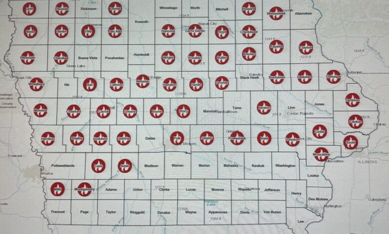 As of 9 am Thursday (10.10), 56 of Iowa’s 99 counties are now under burn bans due to persistent dry conditions, with no rain currently in the forecast through next Wednesday (10.15).