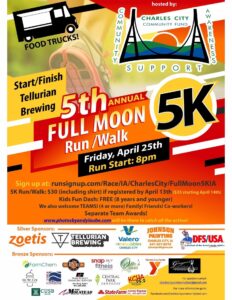 Register by Sunday (04.13) for Charles City Community Fund “Full Moon 5K” T-Shirt