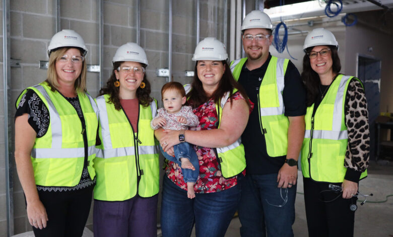 Now as Lilly approaches her first birthday, Brady and Emily wanted to do something special to let all the FCMC team members who cared for Lilly know that the Garden family would always remember them. On Monday, September 29, 2025, the Gardens surprised Dr. Wedeking and Danielle – as well as Judi Halbach, ARNP, CNM who cared for Emily during her pregnancy – with the new space under construction.