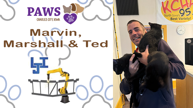 For more information on Marvin, Marshall and/or Ted, adoption hours, and PAWS events, visit pawscharlescity.com or follow PAWS Humane Society – Charles City on Facebook.