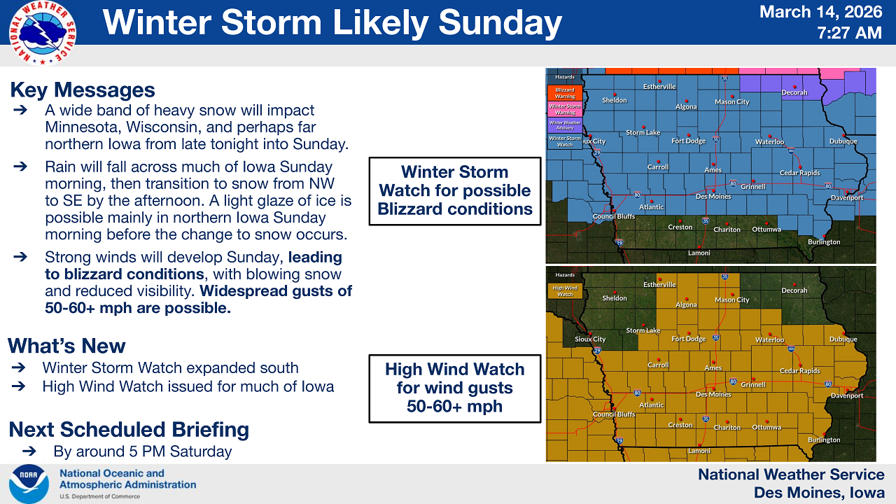 ⚠ Strong Winds, Snow Could Bring Blizzard Conditions to Iowa Sunday ⚠